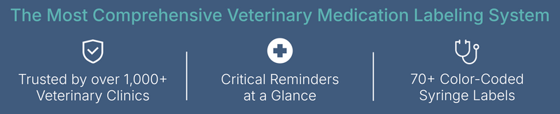 Safe.Vet Smart Labels use a color-coded system designed to reduce medication errors before they happen. With clear reminders for dilution, route, and injection speed, they help your team prepare medications quickly and accurately — especially when the pressure’s on.